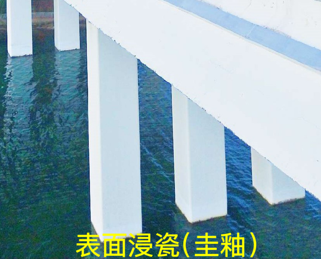 混凝土结构附加防腐蚀措施对于混凝土结构的耐久性至关重要,直接关系到混凝土结构的使用寿命是否能达到设计寿命。圭釉材料主要用作混凝土结构表面防腐材料,圭釉表面浸瓷是混凝土结构附加防腐蚀主要措施之一,解决了混凝土结构碳化、氯离子侵蚀造成的钢筋锈蚀,海洋环境、化学腐蚀环境、除冰盐环境、盐结晶环境、冻融环境造成的混凝土腐蚀劣化破坏,以及水流泥砂作用力对混凝土的不断磨蚀、海生物污垢的附着对混凝土结构防腐的破坏。大幅延长混凝土结构的适用寿命。